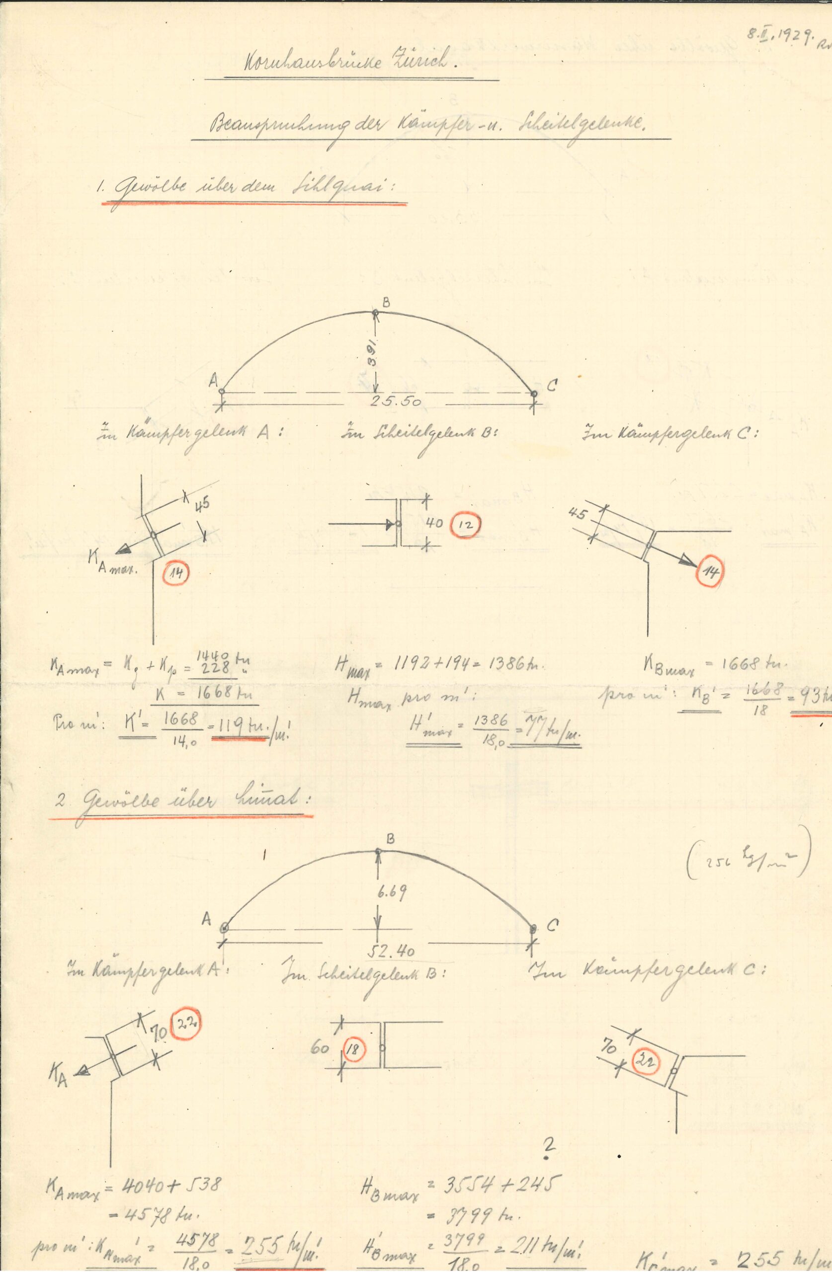 Die Kornhausbrücke war eines der ersten grossen Projekte der Henauer Gugler AG. Eigentlich war eine Verbindung über die Limmat schon 1899 geplant. Das Bauamt 1 aber befand den Bau einer Brücke zunächst als nicht notwendig. Bis sich der Bürgervereinigung Wipkingen und der Quartierverein mit 10’000 Unterschriften für die Verbindung zwischen den Stadtkreisen 5 und 6 stark machten. Denn viele der Bewohnerinnen und Bewohner arbeiteten in Wipkingen, wohnten aber auf der gegenüberliegenden Seite der Limmat. April 1923 lud man zunächst zu einem Ideenwettbewerb ein. Dabei setzt sich der Entwurf des Ingenieurs Ernst Rathgeb, den er mit den Architekten Winawer und Guimini einreichte, gegen 24 Mitbewerber durch. Am 20. Mai 1927 stimmten die Bürger dem 1’880’000 CHF Projekt zu. 314 Meter lang und 18 Meter breit lang sollte die Bogenbrücke sein. Mit einer elf Meter breiten Fahrbahn und etwas 3.5 Meter breiten Gehwegen.